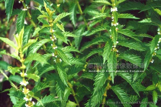 多年生草本,高達1.7米,具多節的圓柱狀地下橫走根莖,有鱗片和鬚根。莖直立,不分枝,四棱形,無毛或節稍紫紅色。葉交互對生,極短柄或無柄;莖下部葉多脫落,上部葉呈長圓狀披針形,長5-10厘米,寬1.5-4厘米,先端漸尖,基部楔形,具不整齊粗銳鋸齒,兩面無毛,略有光澤,下面被腺點;輪傘花序多花,腋生;小苞片卵狀披針形,先端刺尖,被柔毛;花萼鐘形,長約4毫米,無毛,4-6裂,裂片狹三角形;花冠白色,鐘形,長5毫米,冠檐被腺點,喉部被白色柔毛,上唇近圓形,先端微凹,下唇三裂,中裂片較大。前對雄蕊2,後對雄蕊退化,僅存花絲,有時4枚雄蕊全部退化;子房長圓形,4深裂,生於花盤上,花柱無毛,伸於花冠外,柱頭2裂,扁平。小堅果扁平,倒卵球狀四邊形,長1.6毫米,暗褐色,被腺點。花期6-9月,果期8-10月。 |
