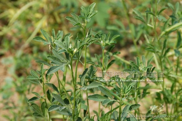 Annual herb, 30-80cm high. Main root deep and long, root system developed. Whole plant aromatic. Stem cylindrical, upright, branches plentiful, sparsely covered hairs. Pinnated ternately compound leaf, alternate; petiole 1-4cm long; leaflet 3, basidixed aphlebia invert ovate or oblong lanceolate, 1-4cm long, 0.5-1.5cm wide, blunt and round in the tip, basal part wedge shaped, margin upside with triangular sawtooth, both sides covered with sparse soft hairs or hairless, with comparatively long petiolule, lateral leaflet comparatively small, lateral vein 5-7 pairs; stipule connected with petiole, broadly triangular, tip gradually pointed, covered with hairs, membranous, entire, with hairs. Flower 1-2 and axillary, sessile; calyx tubular, 7-8mm long, covered with long soft hairs, calyx teeth lanceolate, nearly equal to calyx tube in length; corolla papilionaceous, yellowish white or light yellow, basal part slightly purplish, vexil long circular, deep-sinuately sunken on the top, clearly longer than ala or carina, ala long circular, carina square invert ovate, stamens 10, 9 pieces accrete in bundle, 1 piece separated; ovary linear, slightly covered with soft hairs, style short, stigma head shaped. Pod linearly cylindrical, straight or slightly sickle-like curled, hairless or slightly covered with soft hairs, with a thin and long rostellum in the tip, with longitudinal net stripes on the surface, 7-12cm long, 4-5mm in diameter. Seed 10-20, nearly elliptic, slightly flat, yellowish brown, surface uneven, 3-5mm long, 2-3mm wide. Flowering: April to July, fruiting: July to September. |