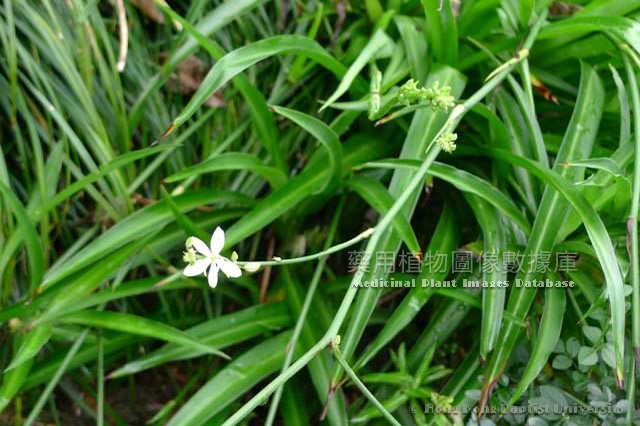 多年生草本。根莖短和肥大,紡錘形。完整葉片條形至條狀披針形,叢生,多數;細長而尖,綠色,有的具黃色縱條紋或邊緣為黃色,長10-30厘米,寬1-2厘米,頂端漸尖;質較堅硬。花葶比葉長,長達50厘米;花小,白色,2-4朵簇生,總狀花序,花梗關節位於上部;花被葉狀,裂片6枚;雄蕊6;子房3室,花柱線形。蒴果扁球形,每室具3-5顆種子。花期5月,果期8月。 |
