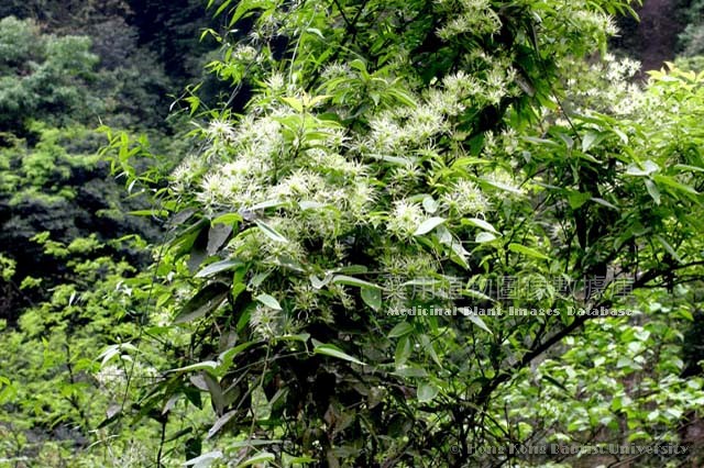 Woody vines, 6m long. Stem cylindrical. Branchlets with edges, and white pubescence, glabrous after deciduous; leaves opposite, petioles 5-7.5cm long, ternate compound leaves. Cymes conical, acrogenous or axillary; flowers bisexual, 3-4cm in diameter; sepals 4-7, oblong or elliptic, 1-4cm long, 0.3-2cm wide, pubescent outside; no petals; stamens numerous, glabrous; carpel numerous. Achenes flat, elliptic, 3mm long, sparsely pubescent, with feathery persistent style, 5cm long. Flowering: March to April, fruiting April to July. |