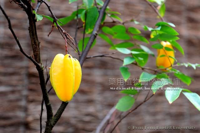 1. Cough due to wind-heat evil: fresh carambola 94-125g, pestle to juice, add crystal sugar to drink; or eat fresh carambola 2-3 times a day, and 1-2 each time. 2. Malaria: carambola flower 15-24g. Decoct, and drink 2-3h before onset, patients with hepatosplenomegaly should eat an appropriate amount of fresh carambola, pestle to collect juice, drink 1 cup each time, 2 times a day. 3. Pyretic thirst, scanty and astringent urine: decoct (Carambola) fresh leaves and drink the decoction to replace tea. 4. Chronci head wind: fresh root of carambola 30-45g, beancurd 120g. Stew and eat, one time a day. |