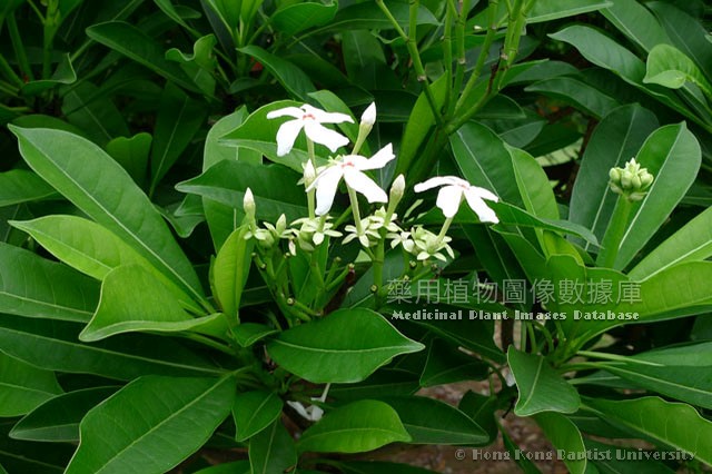 常綠小喬木,高達6米,全株含乳狀汁液。枝輪生,空心,葉痕明顯。單葉,互生,集生於小枝上部,倒披針形,長約25厘米,寬約5厘米,革質,全緣。頂生聚繖花序;花兩性,輻射對稱,直徑約5厘米,花冠管長約3厘米,左旋裂片5片,芳香,白色,喉部紅色。核果卵圓形,長6厘米,熟時紅色。種子1顆。 |